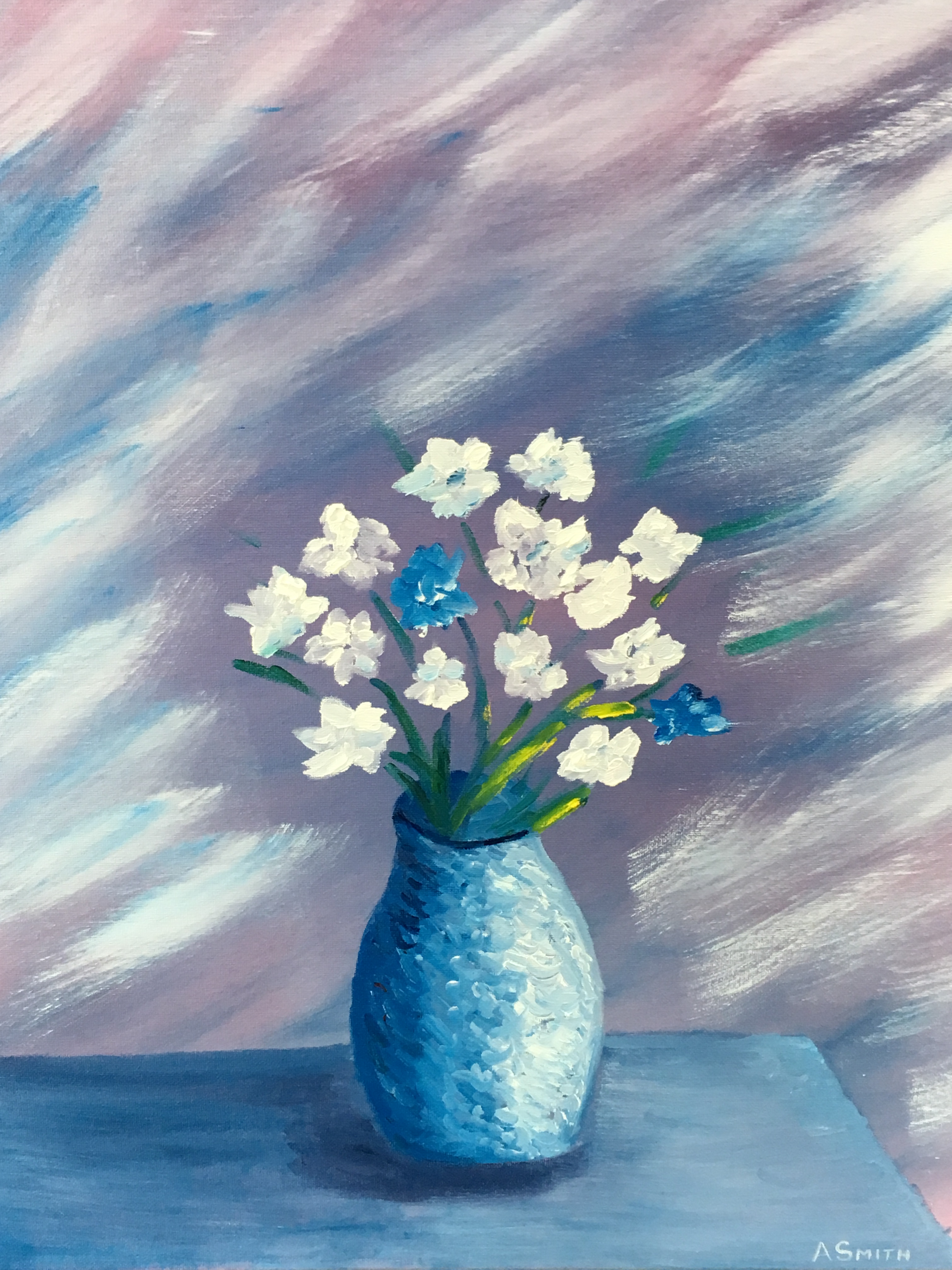 Vase Vase, completed February 15, 2017, using water-soluble oils. Unvarnished, 16×20 stretched canvas [Show slideshow]