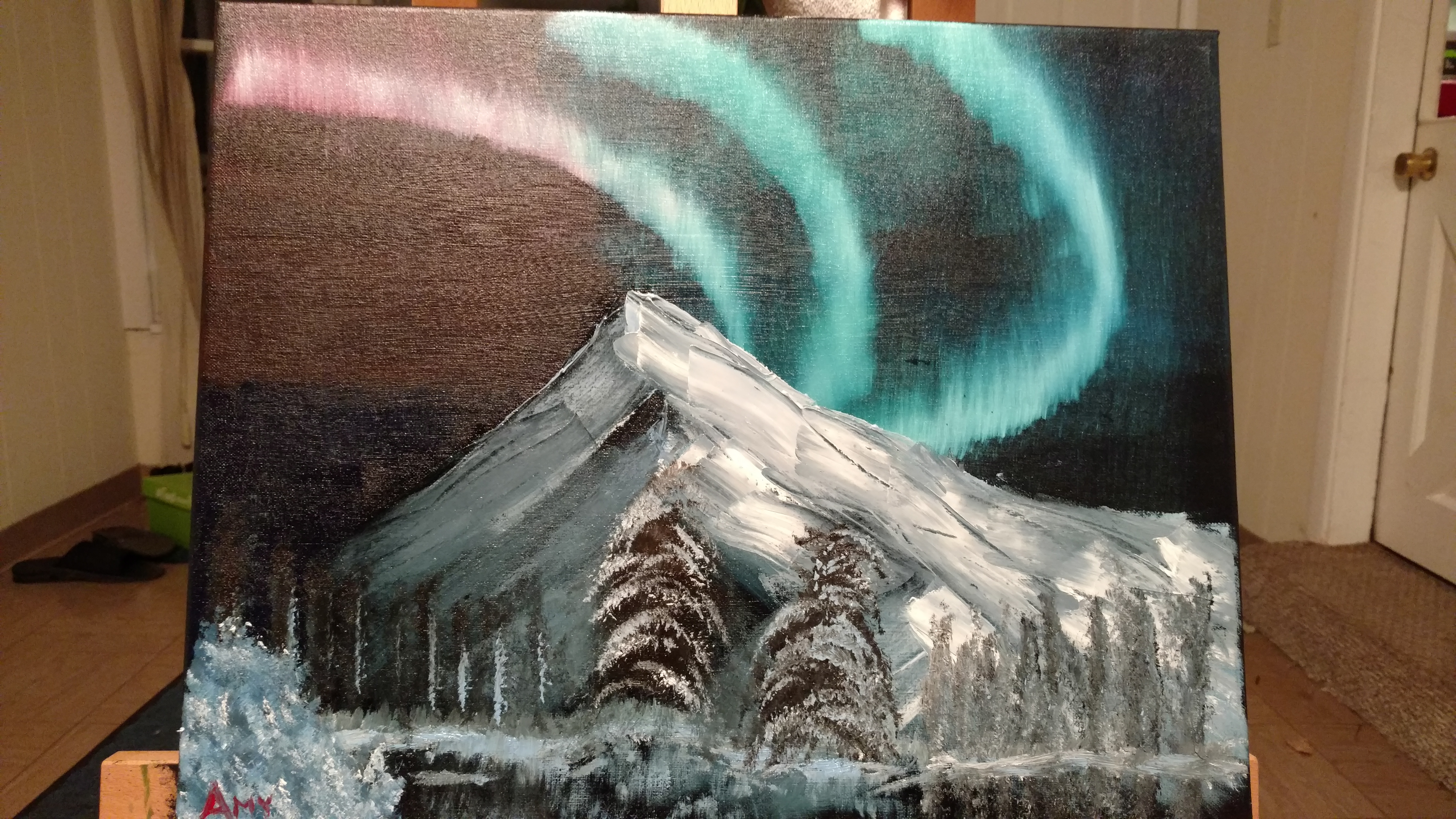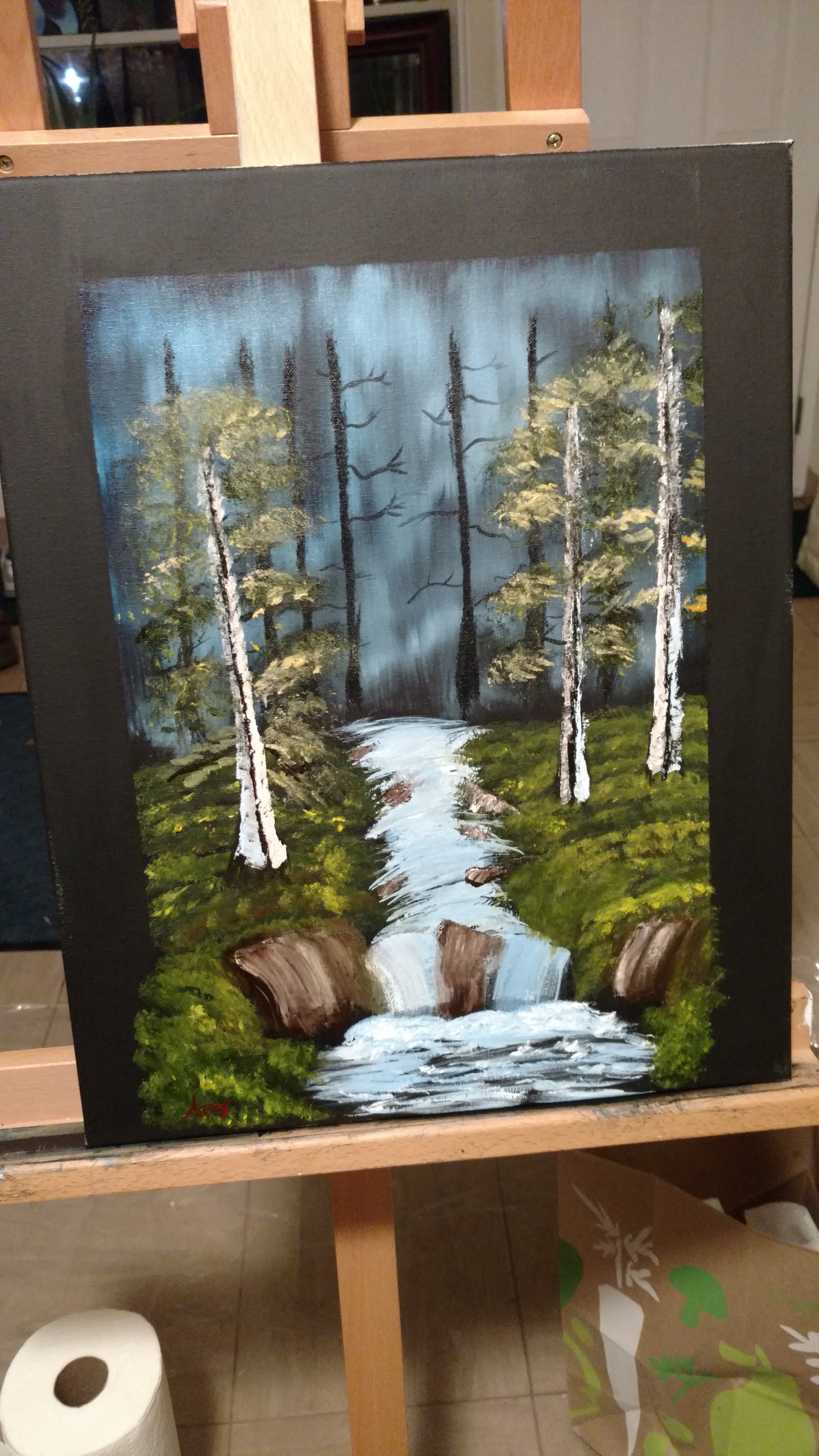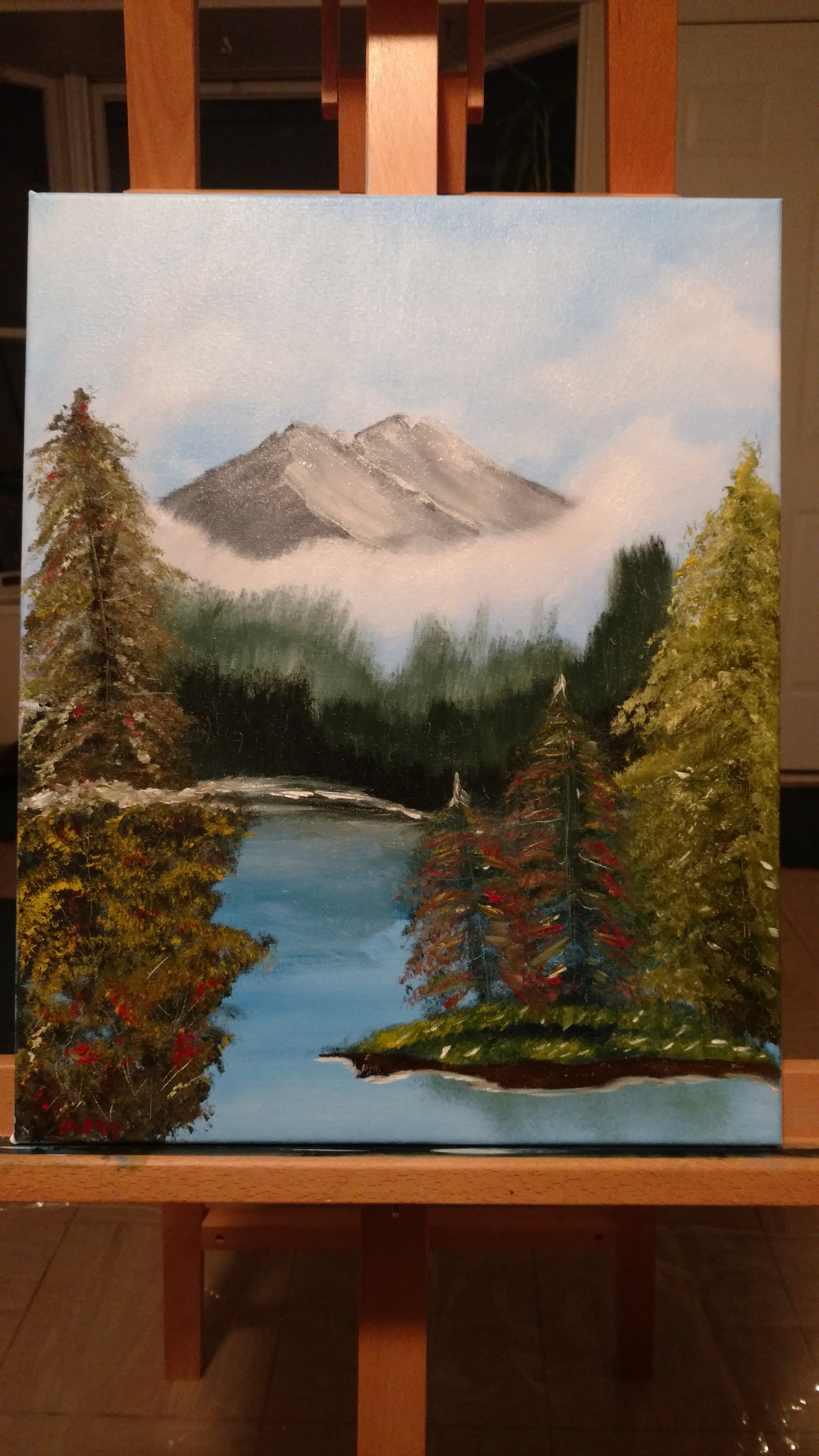 I’ve taken other classes scattered over the years, but recently, have taken to watching Bob Ross videos on YouTube to learn more about his painting technique. It’s interesting. It’s fun. It’s free.
